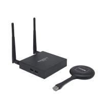 无线传屏,支持Windows、MAC和Linux电脑,仅通过USB口,同时完成传输和供电,无线传屏至接收端。一键传屏,无需安装软件。